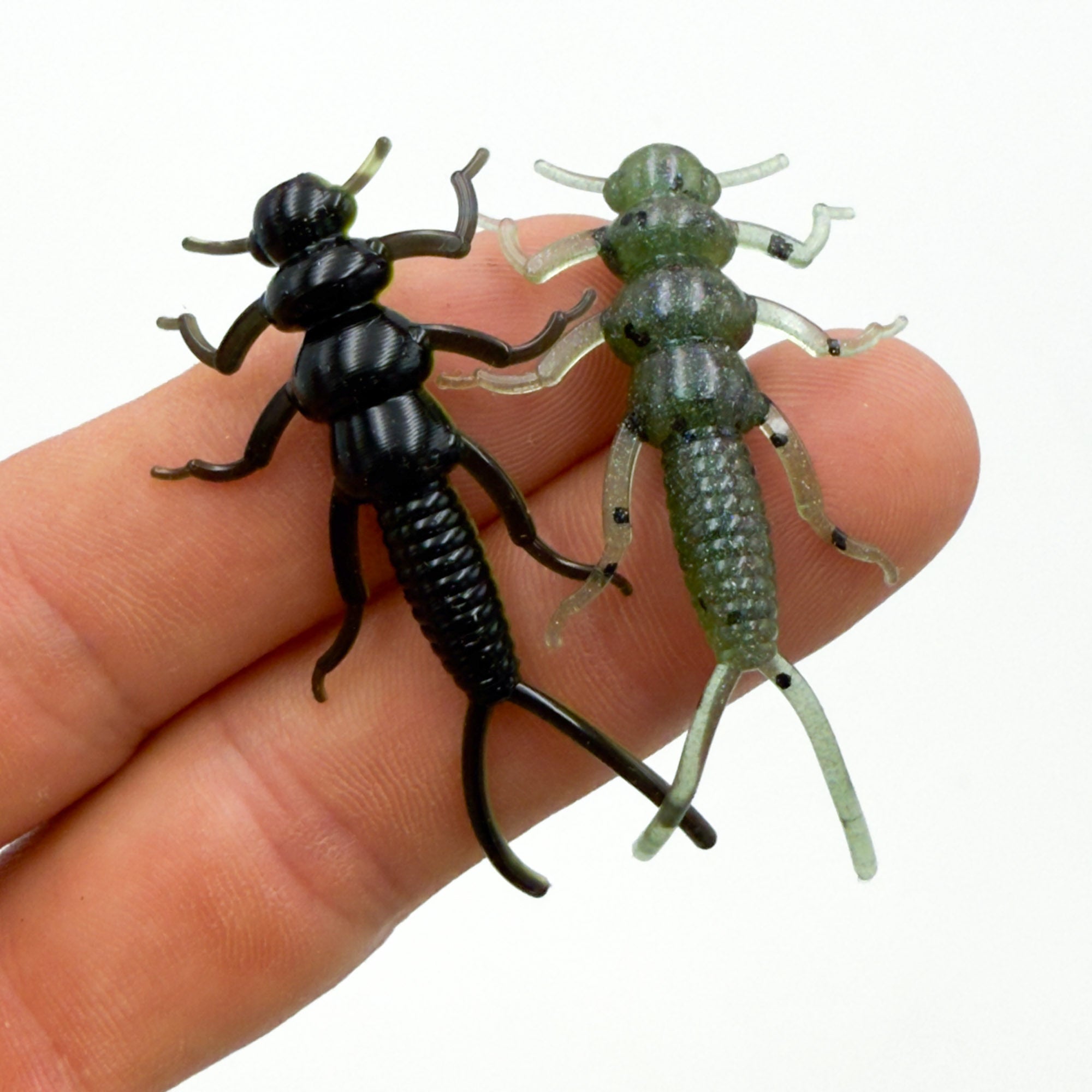 The 2 Inch StoneFly bait measures 2 inches from head to tip of tails. Featuring a lifelike body shape, jointed legs, and long thin tails this bait is the perfect Stonefly imitation with incredible action. We always think these baits are actual bugs when we see them laying around the workbench!