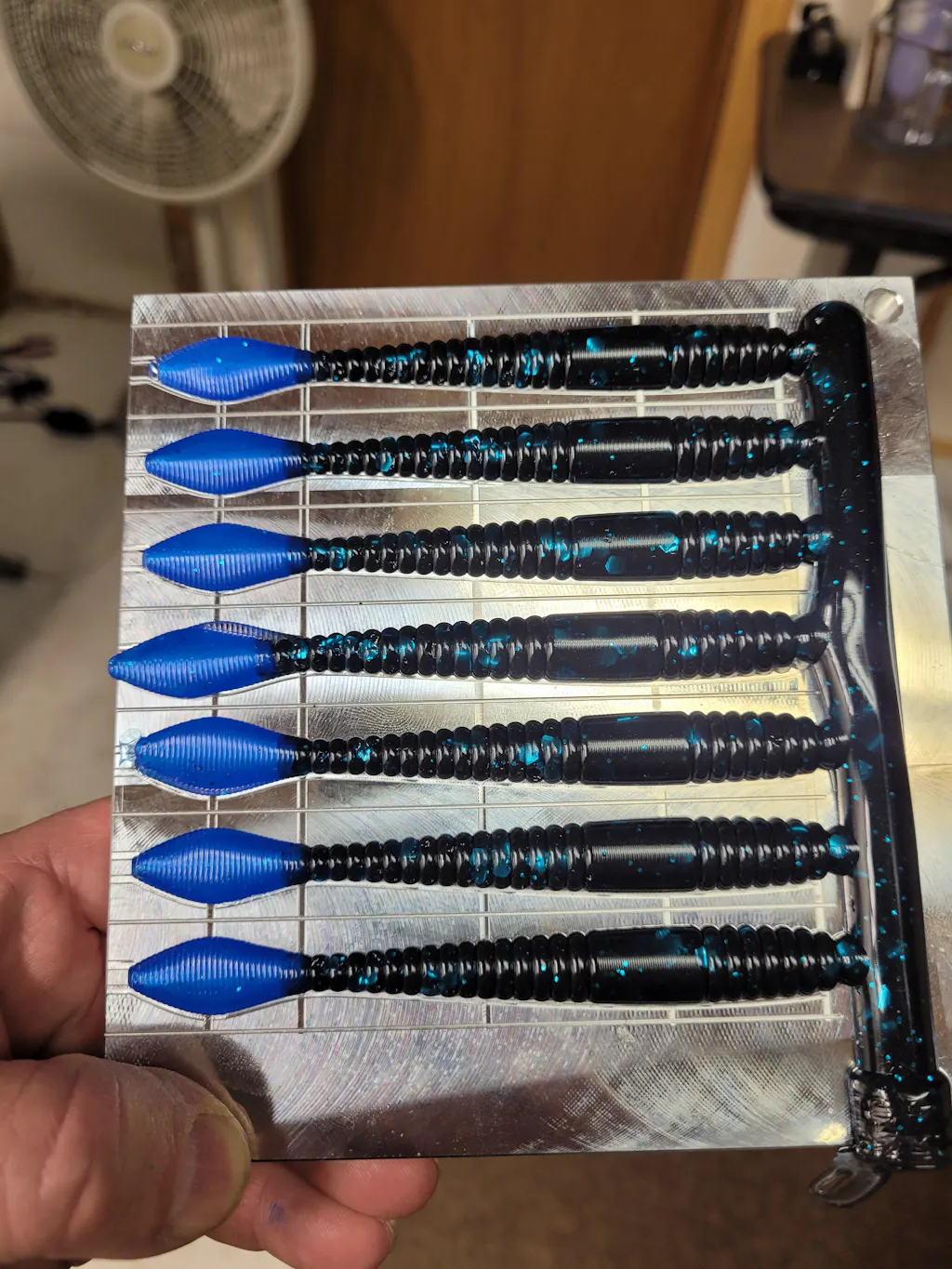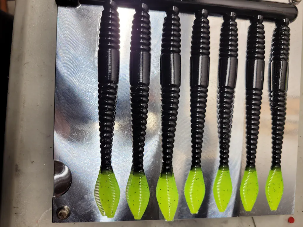 This mold can be used to shoot single, dual or triple color laminated baits with the use of a dual or triple injector (not included).