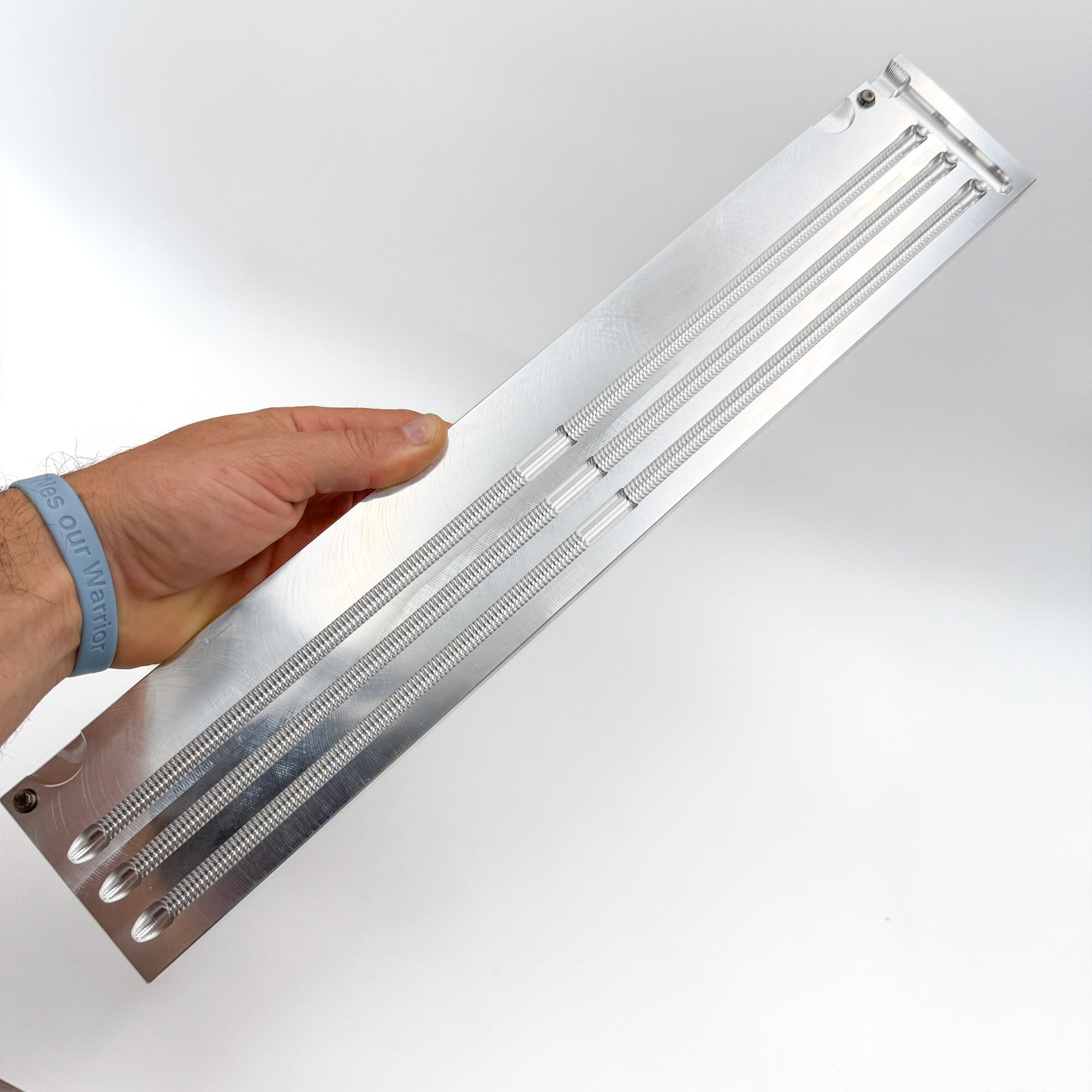 Because of the length of this mold there is some natural "bow" in the mold from stress in the metal and the manufacturing process. This is normal and when you clamp the mold it will shut flat. We recommend clamping on both ends and in the center when making baits with this mold.