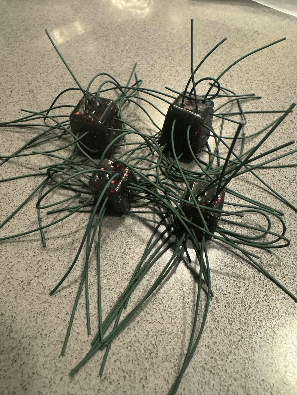 The .7 Inch Lucky Dice mold produces "cube like" baits that are intended to be "threaded" with rubber skirt material to create "hair-like projections" sticking out of the cube. The .7 Inch Lucky Dice baits measure .7" from flat side to flat side. The bait is slightly taller than it is side to side and features a slight taper.