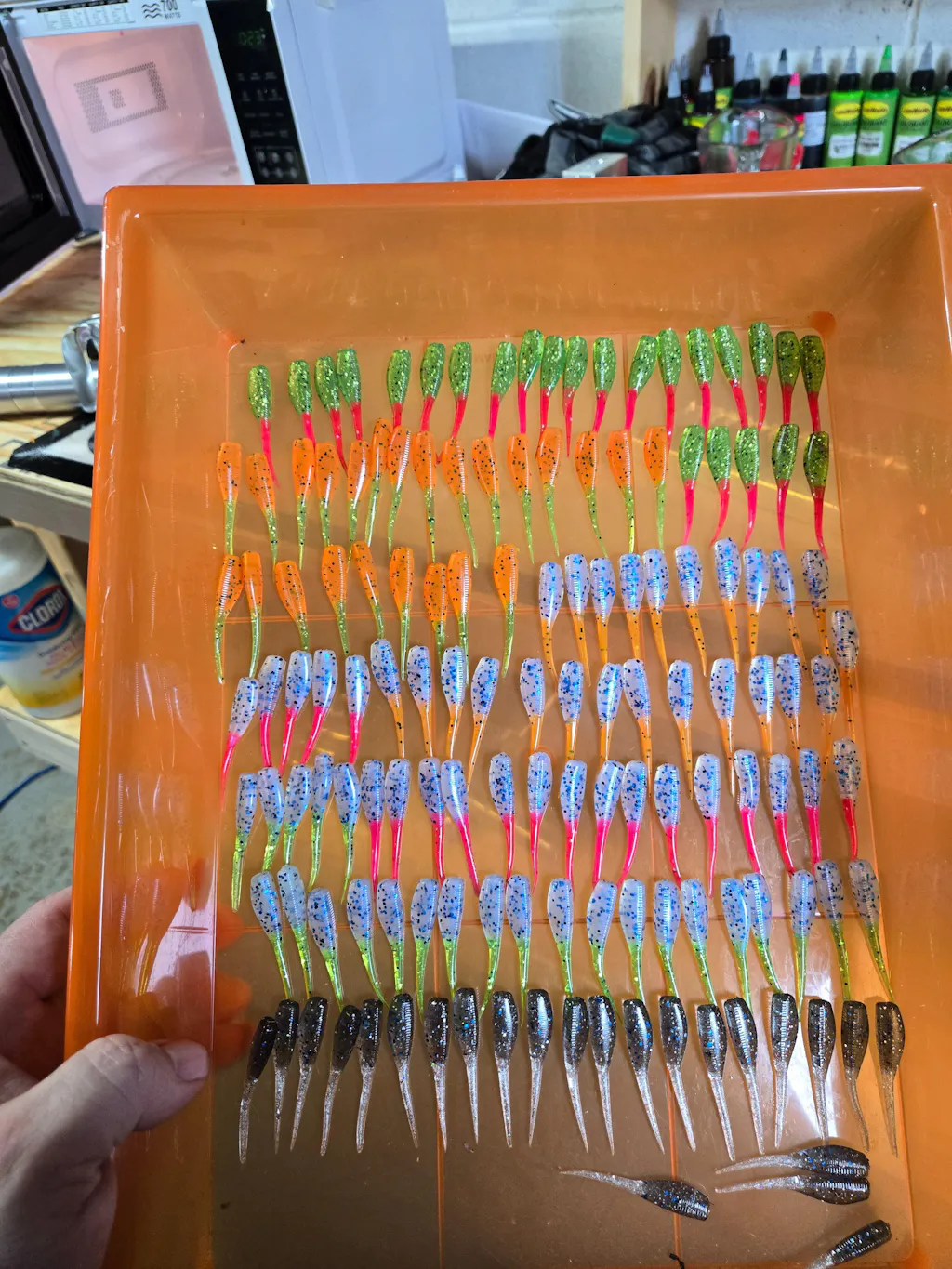 This mold creates tails designed to go into our 2 Inch Crappie Slayer Hand Injection Mold. This allows you to quickly and easily create accent color tails that can be put into the full bodied bait mold of the 2 Inch Epic Crappie Slayer (sold separately). Once the tails are into the full bodied bait mold, you can then inject around 350-360 degrees F so the tails will adhere.